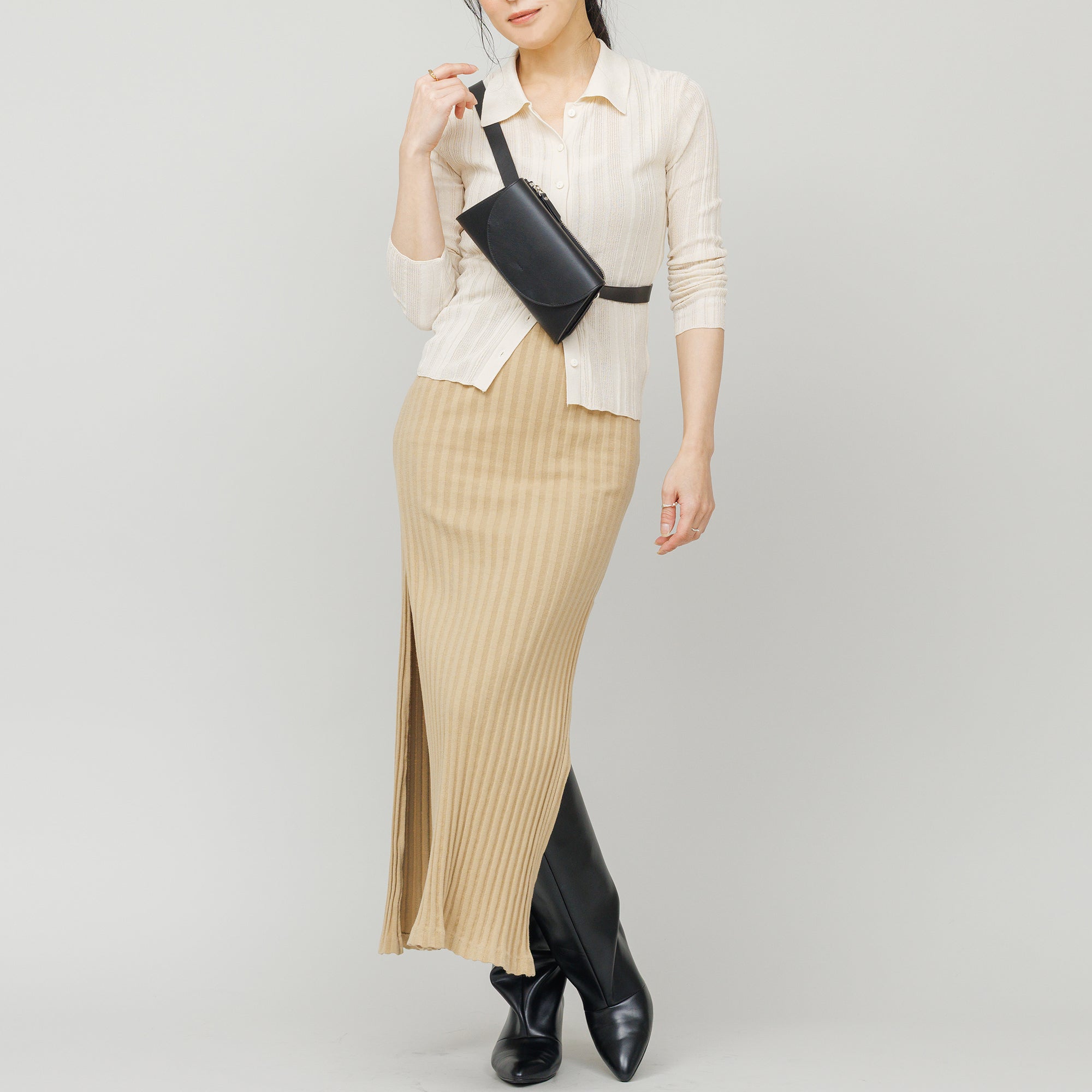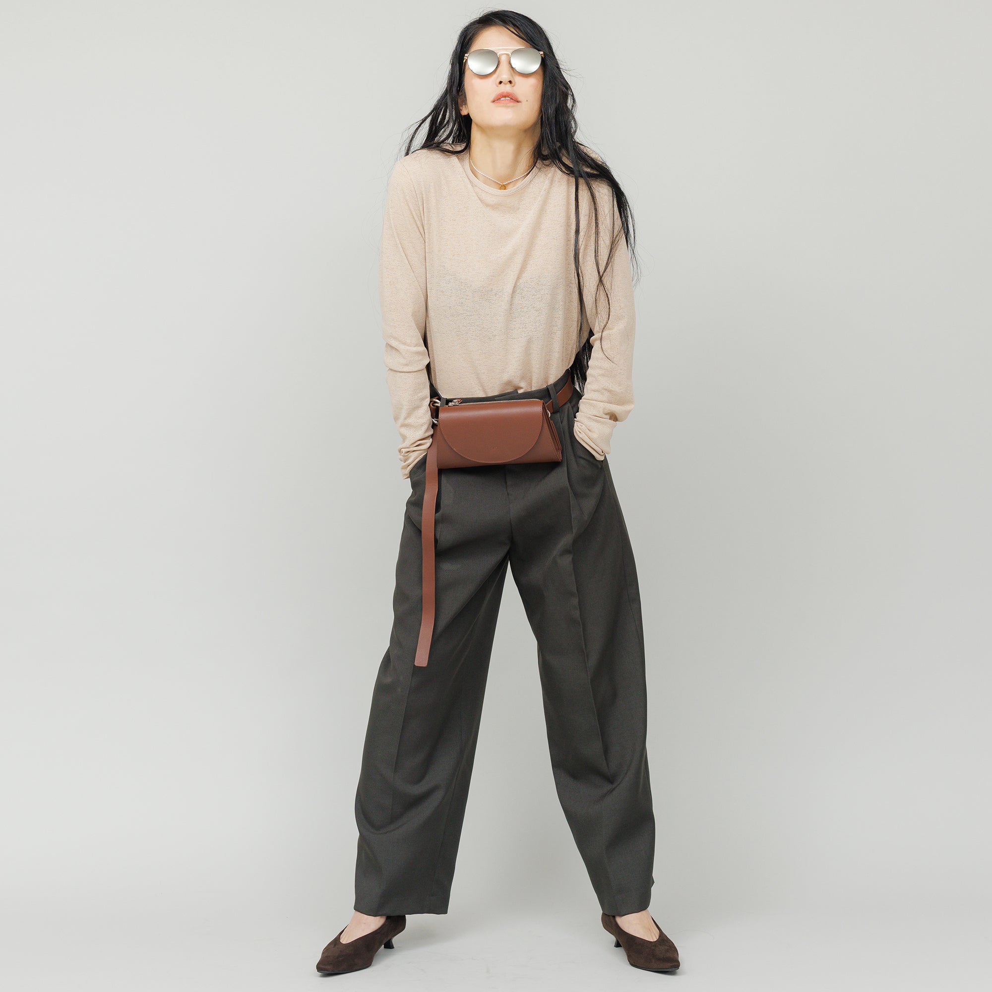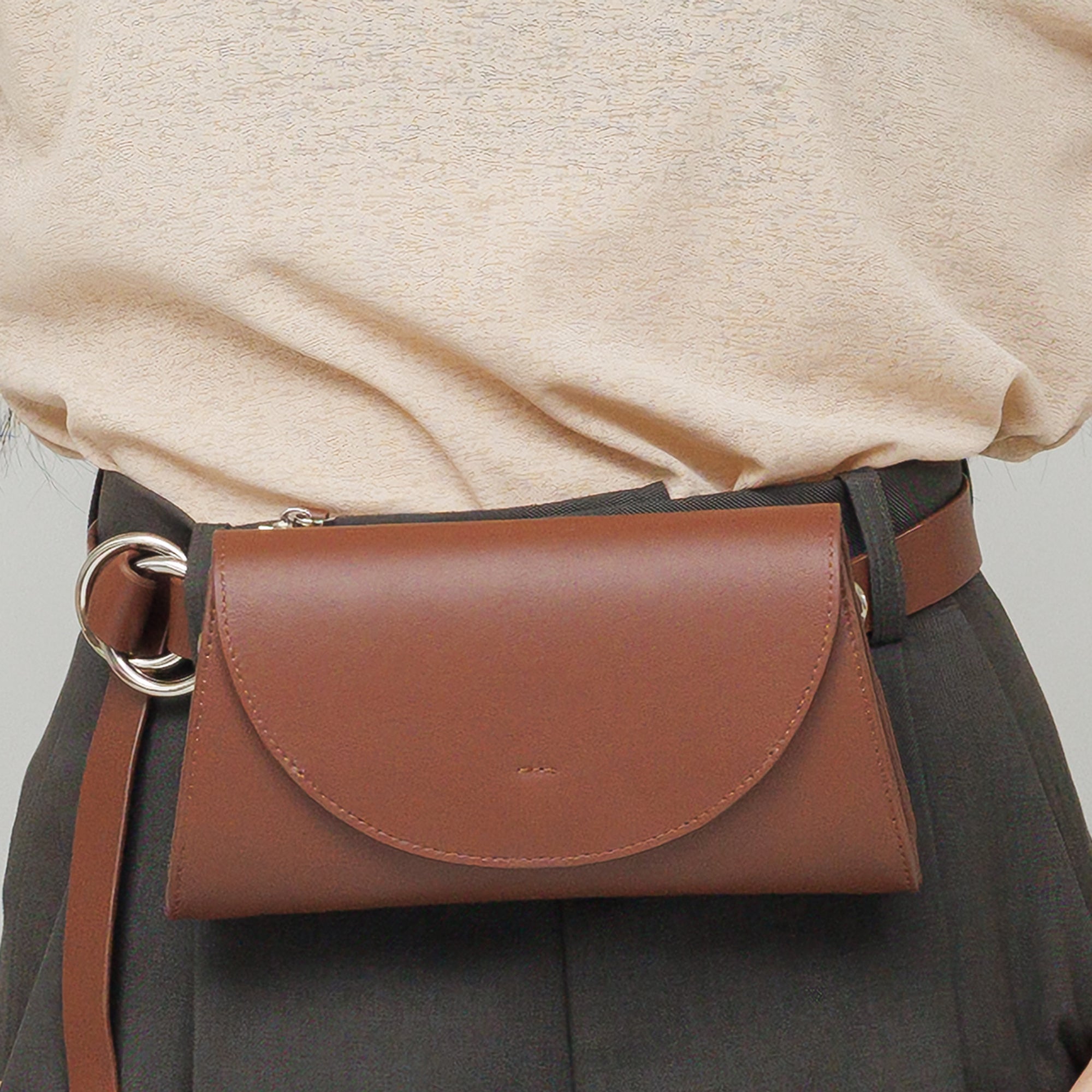 短く斜め掛けにしてのボディバッグはもちろん、腰に巻いてウエストバッグにもなるユーティリティ性が魅力。