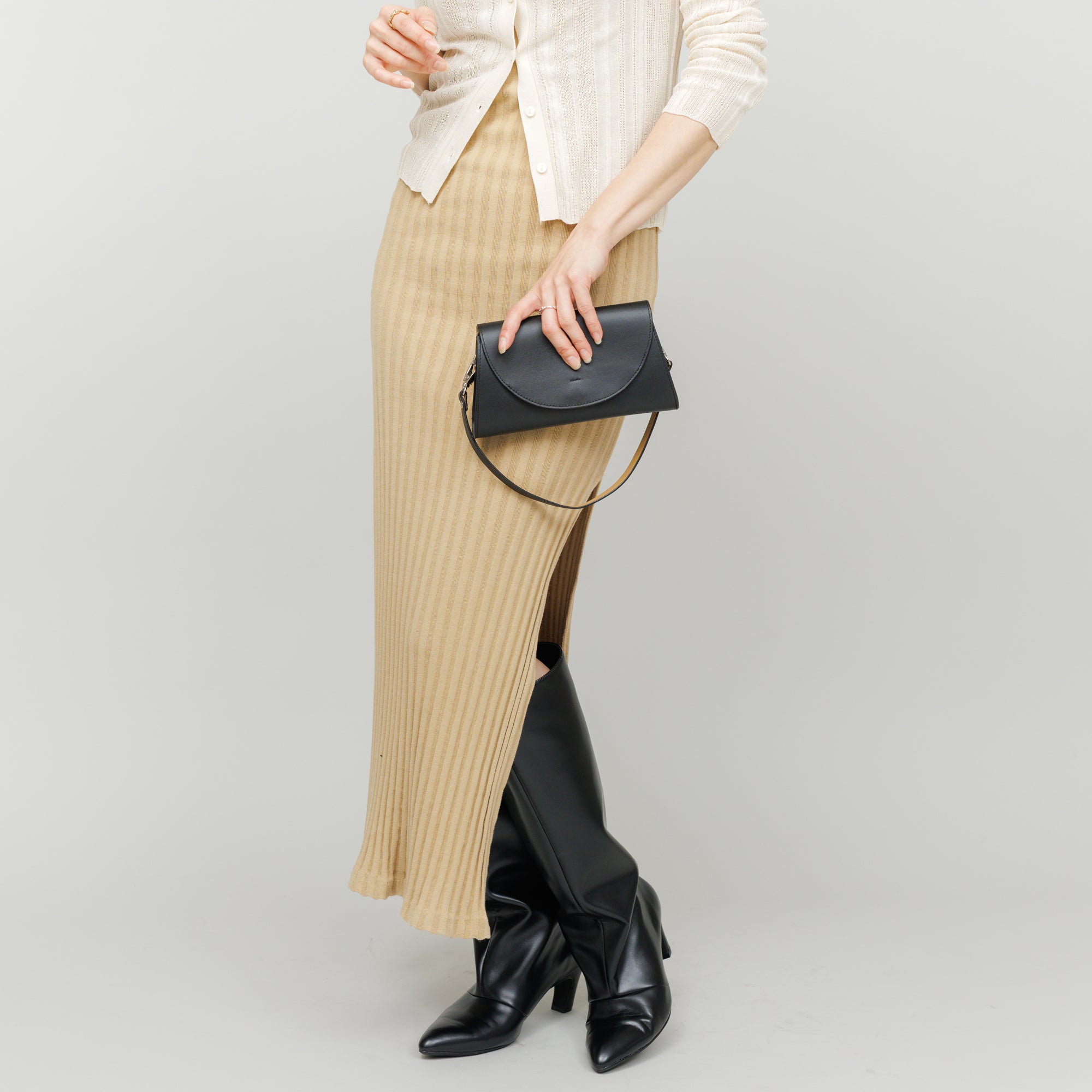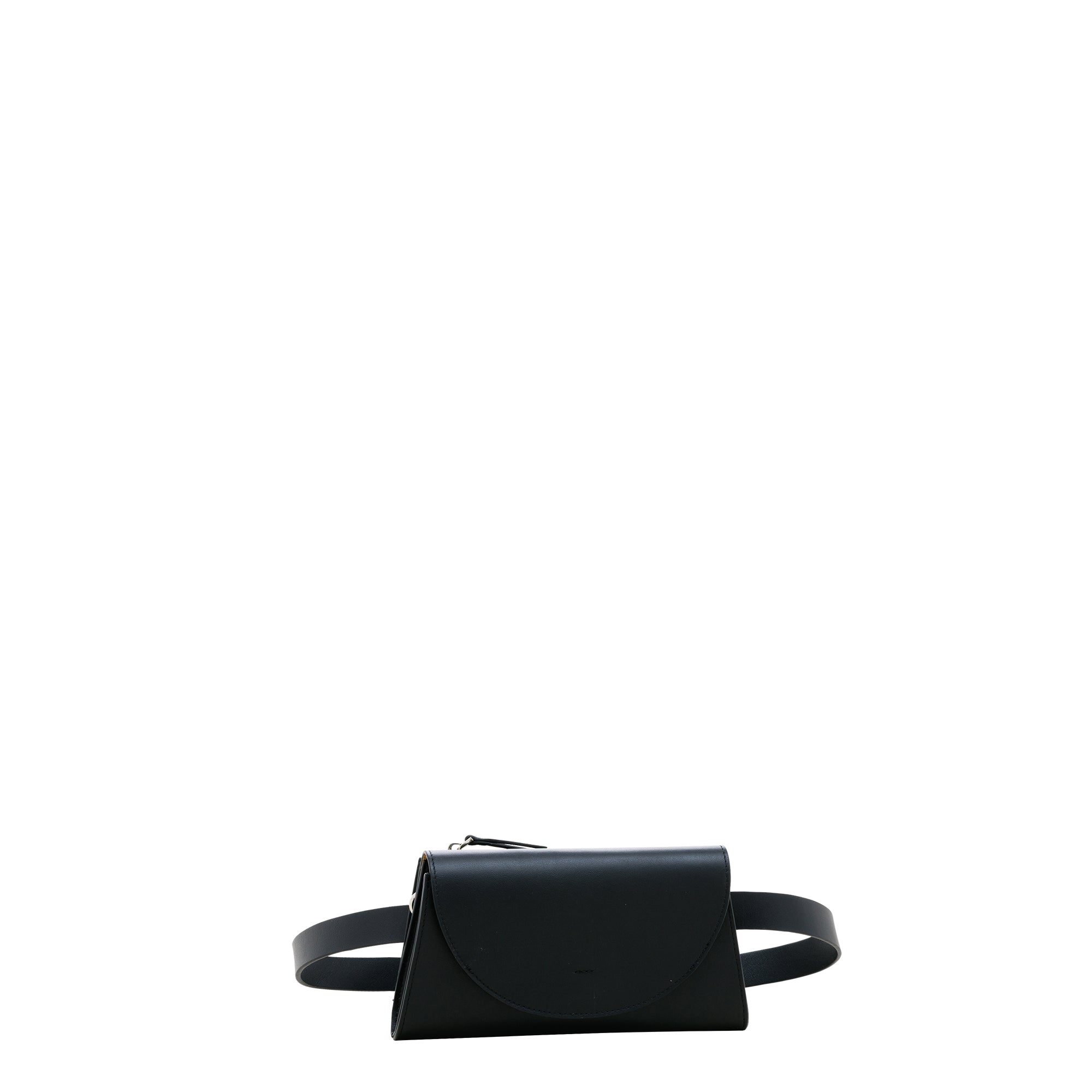 マットな牛レザーで仕上げたモードなミニボディバッグ。