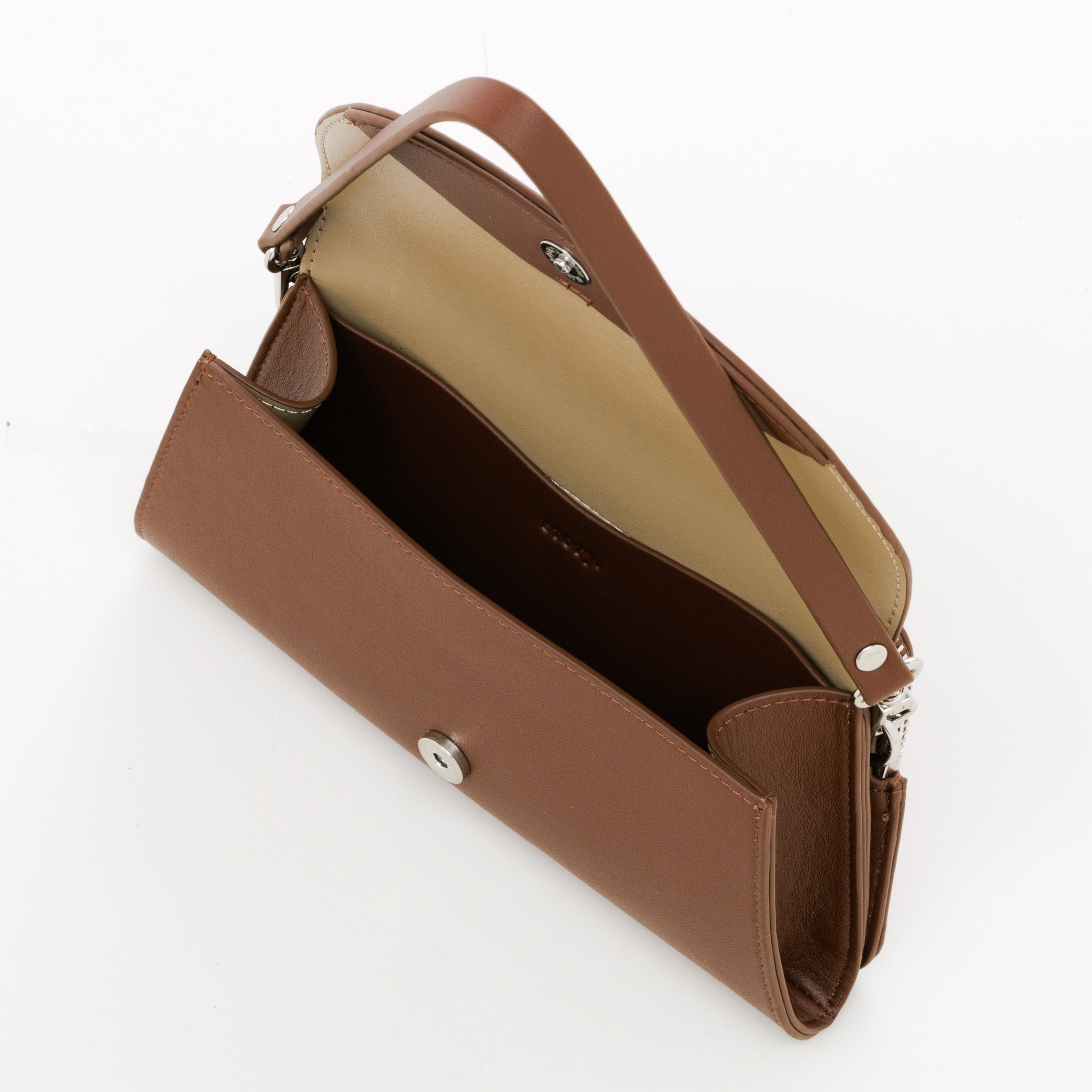 小さいながらも背面のファスナーポケットで上手に収納。ケータイやパスポートなどの必要最低限の荷物をスタイリッシュに持ち歩けます。