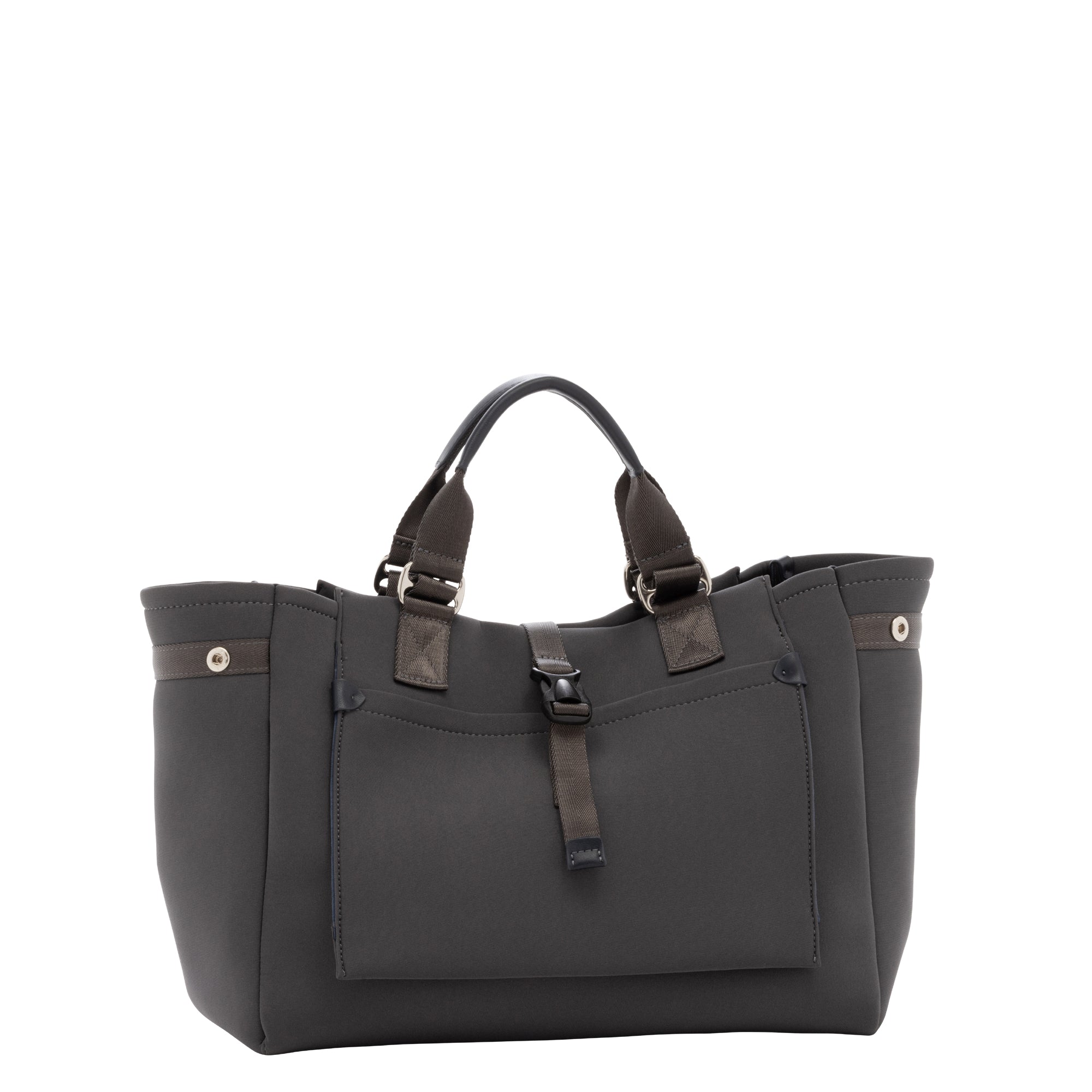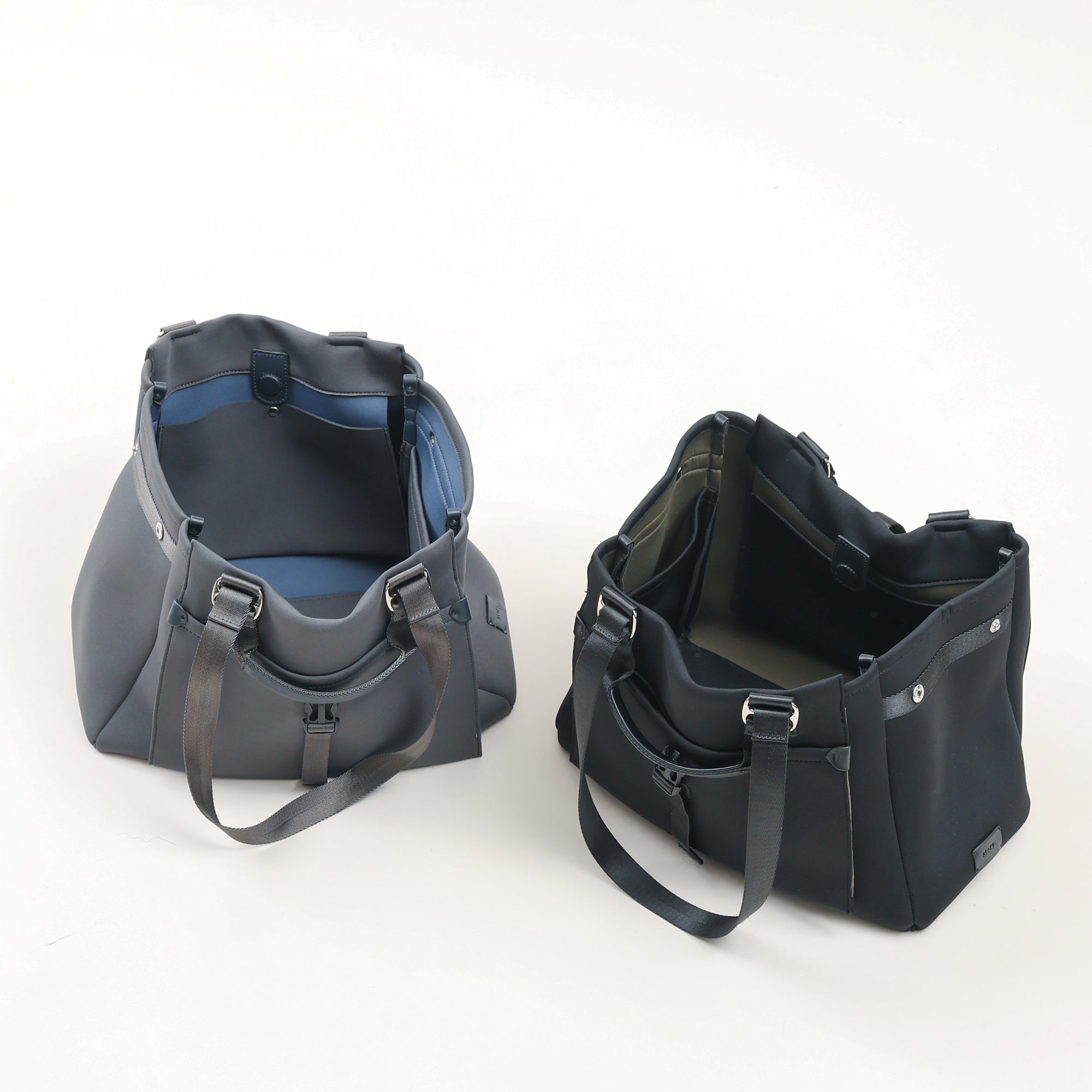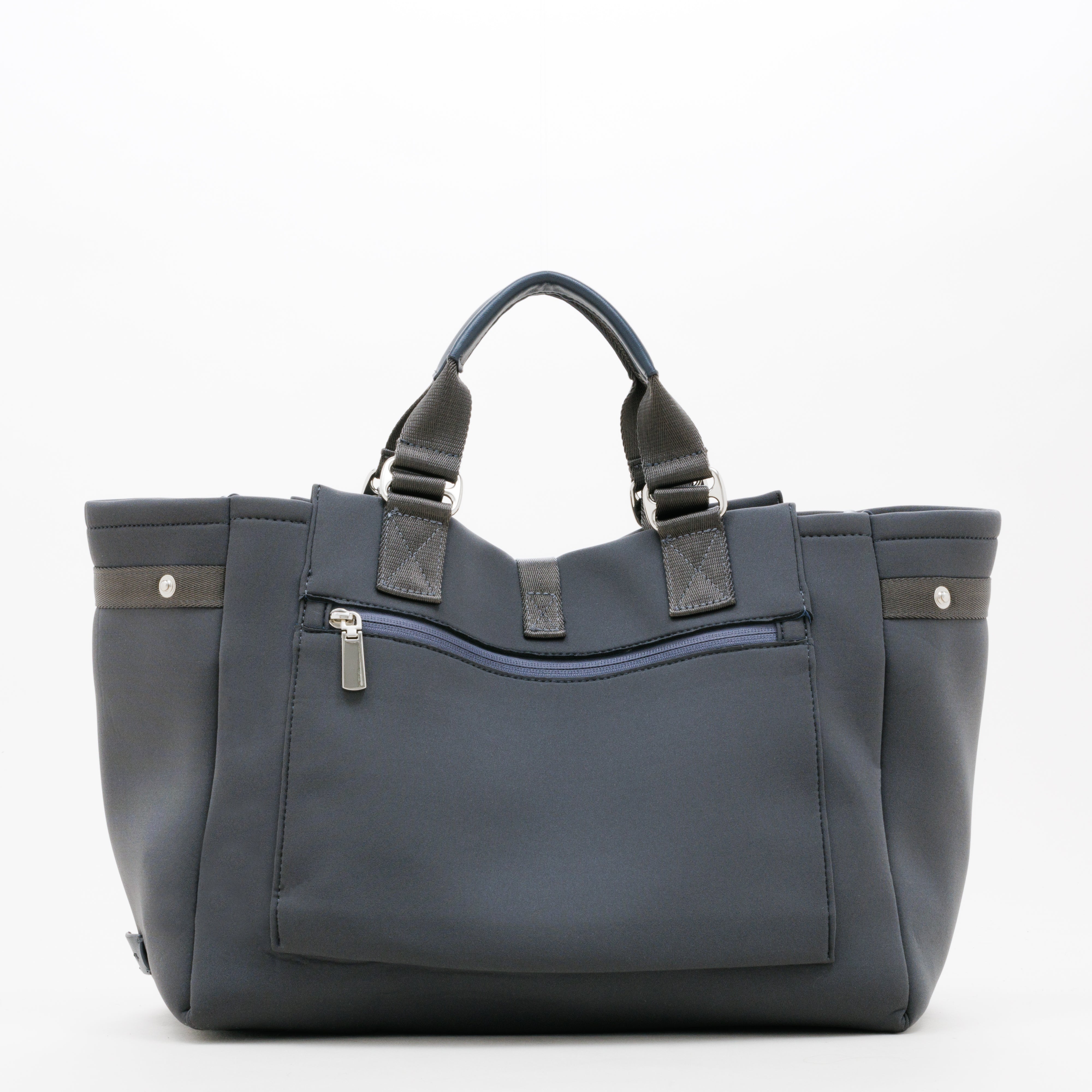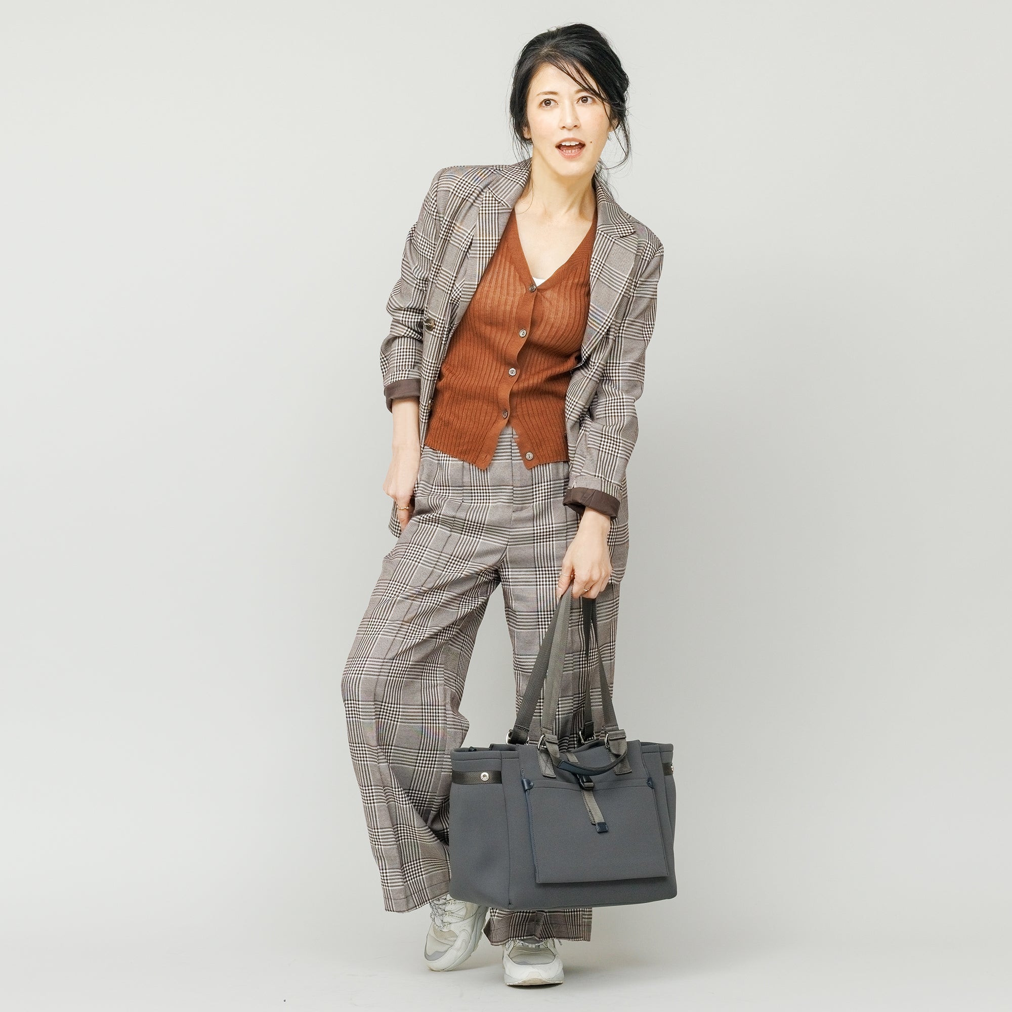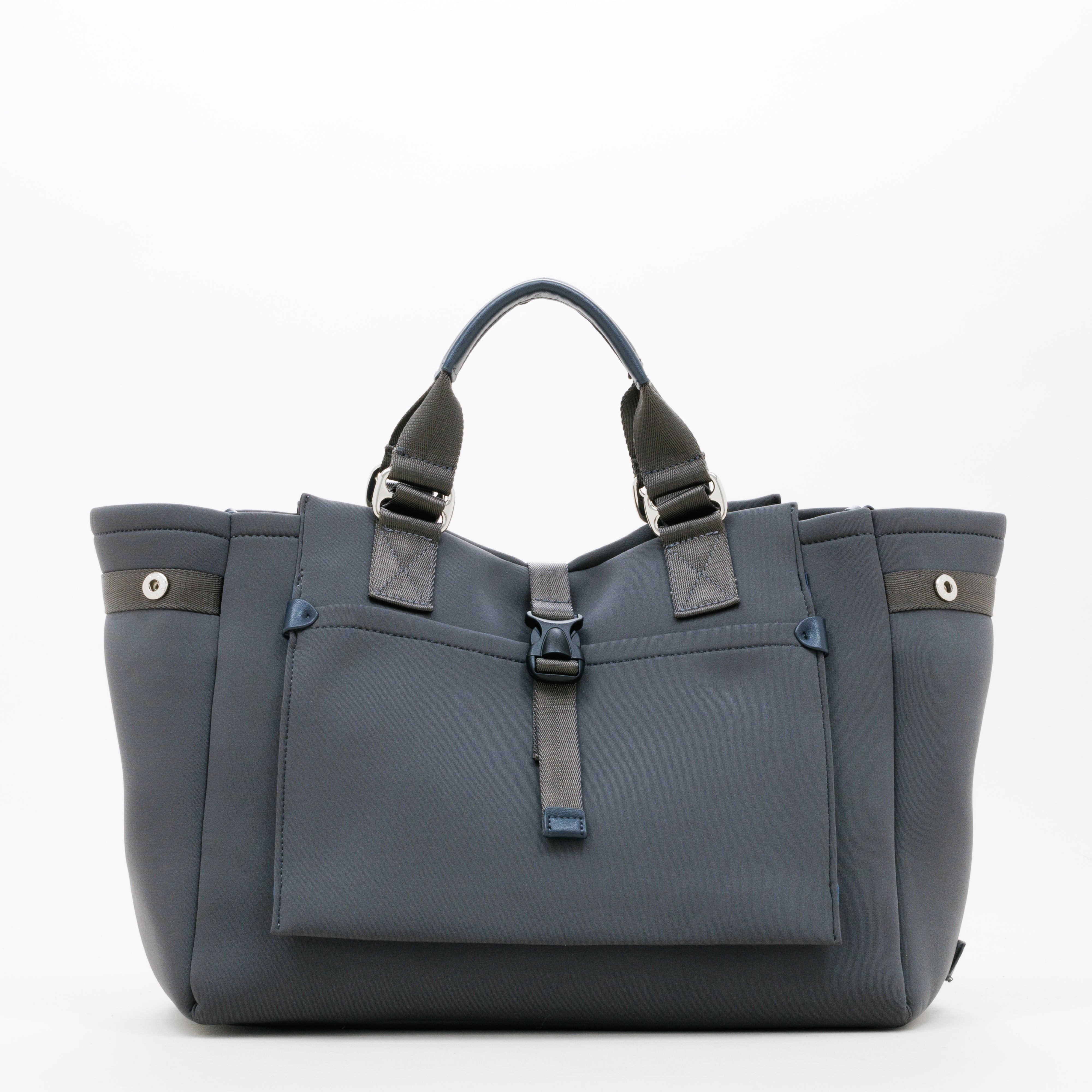 カジュアルなディテールながらも全体の色味を抑えることで都会的な雰囲気に仕上げたトートバッグ。