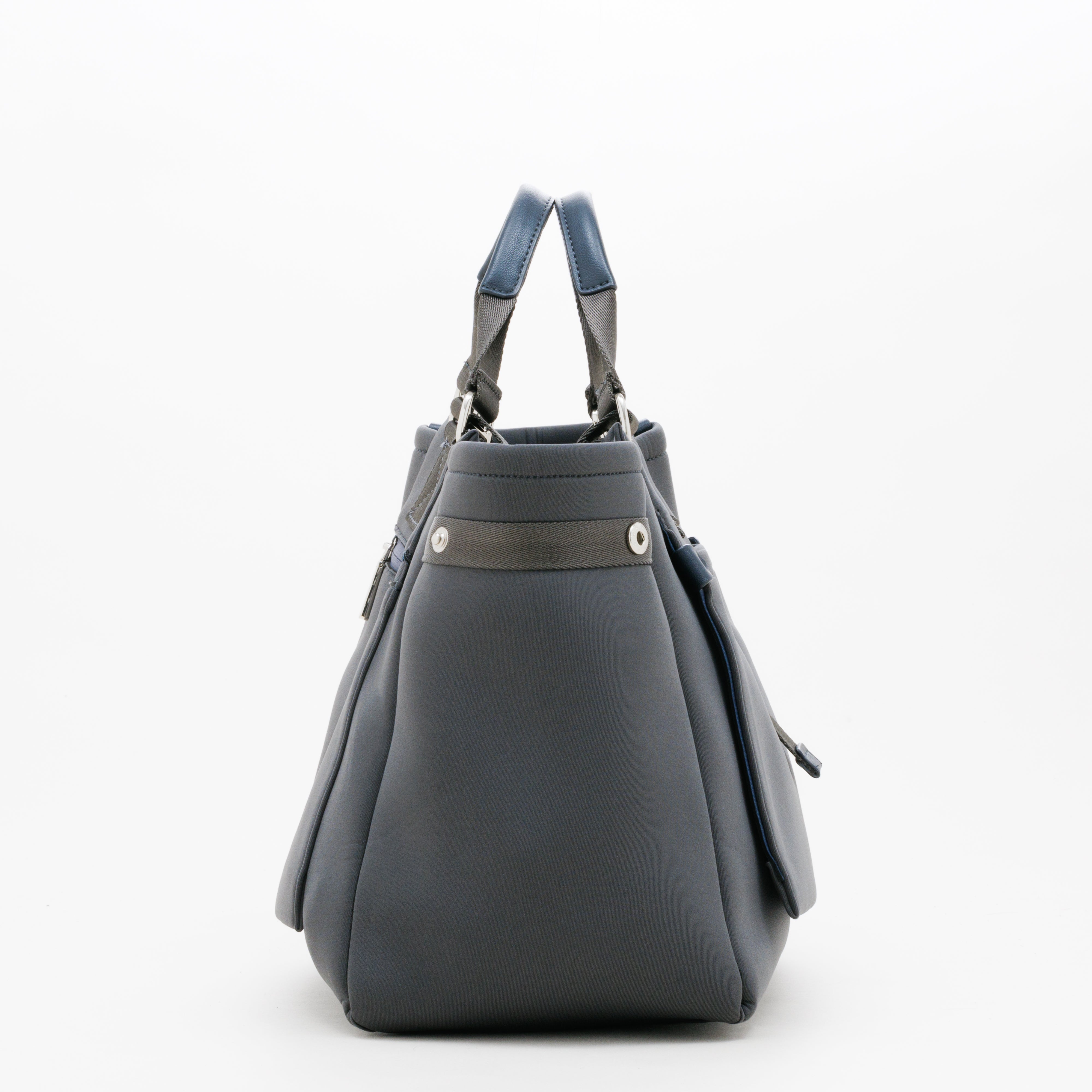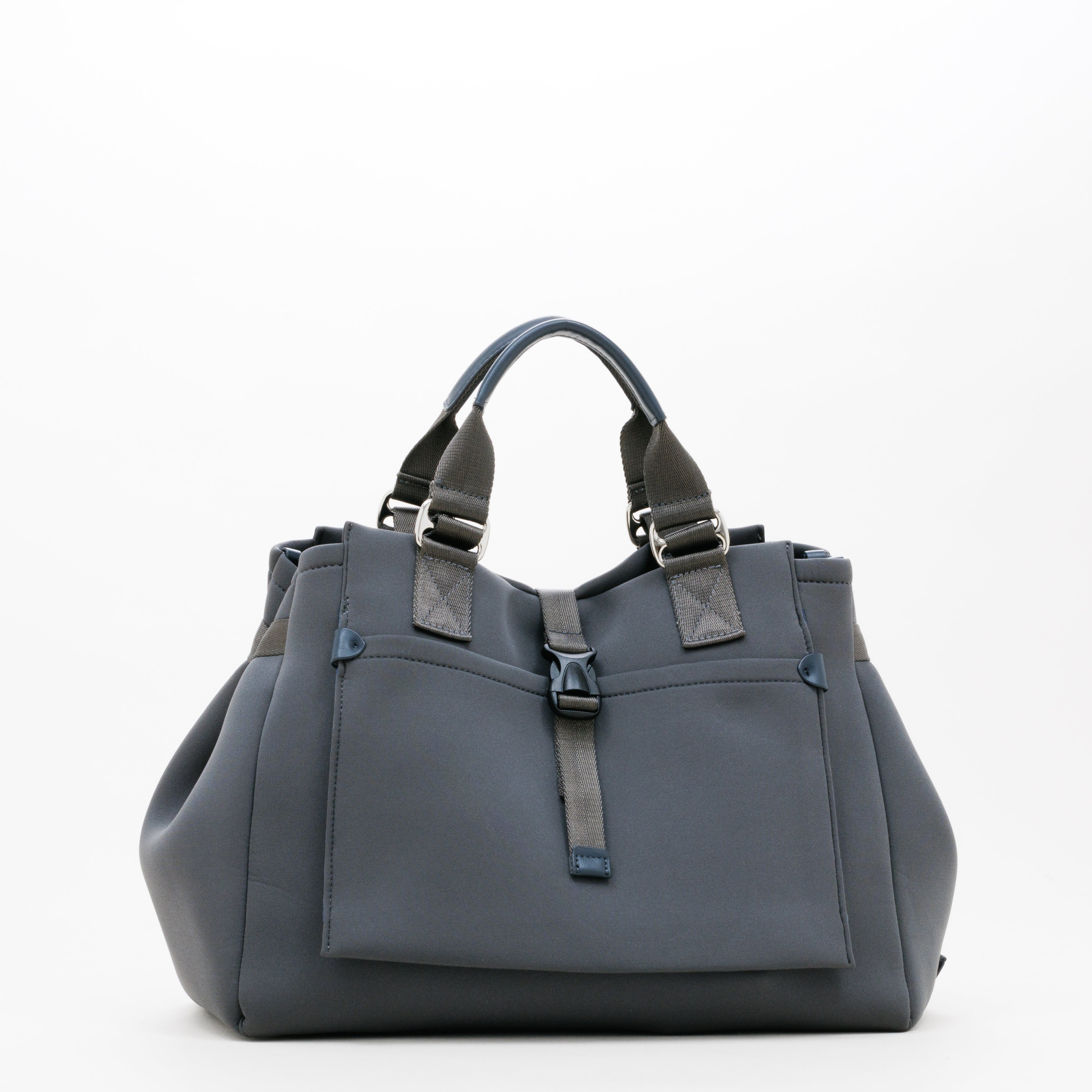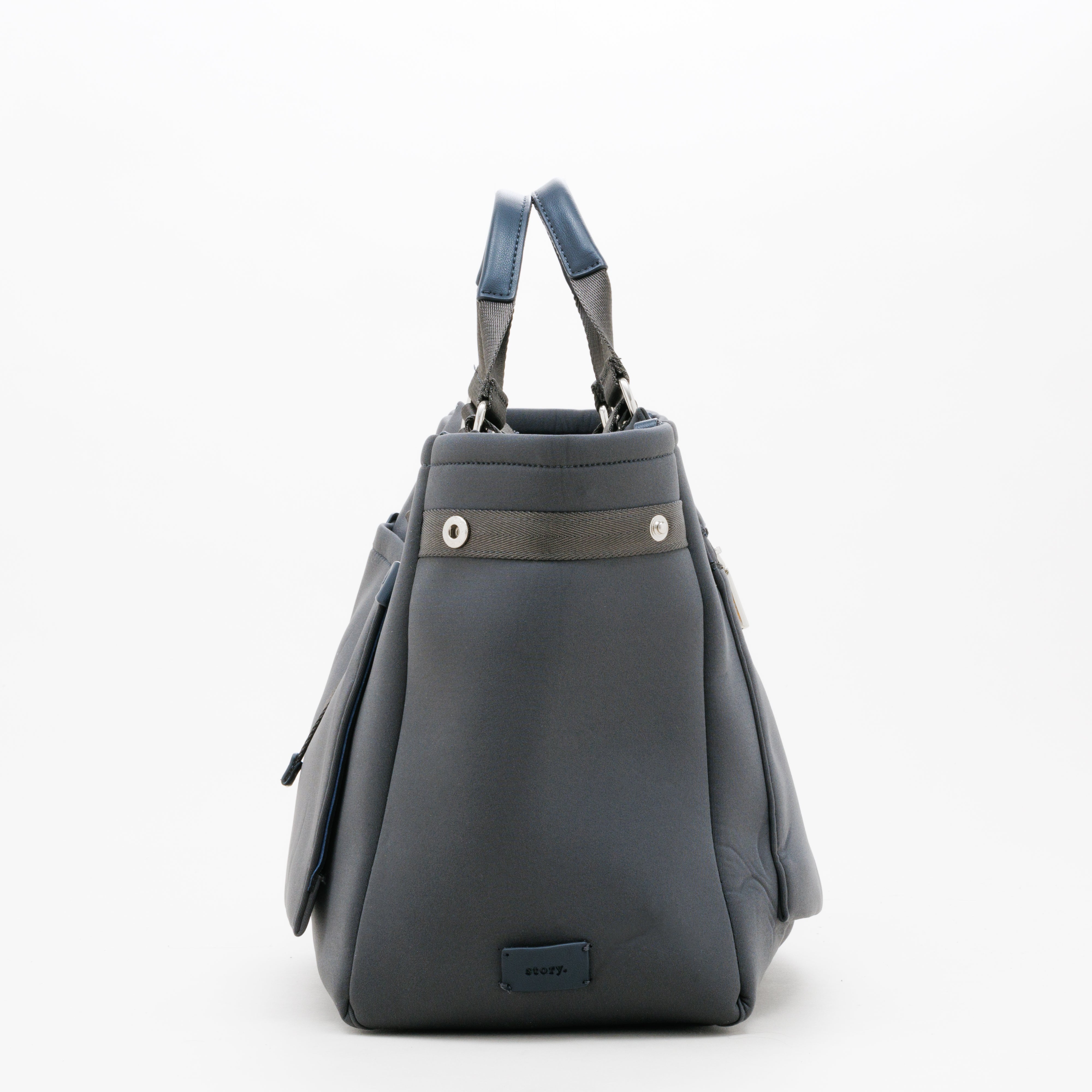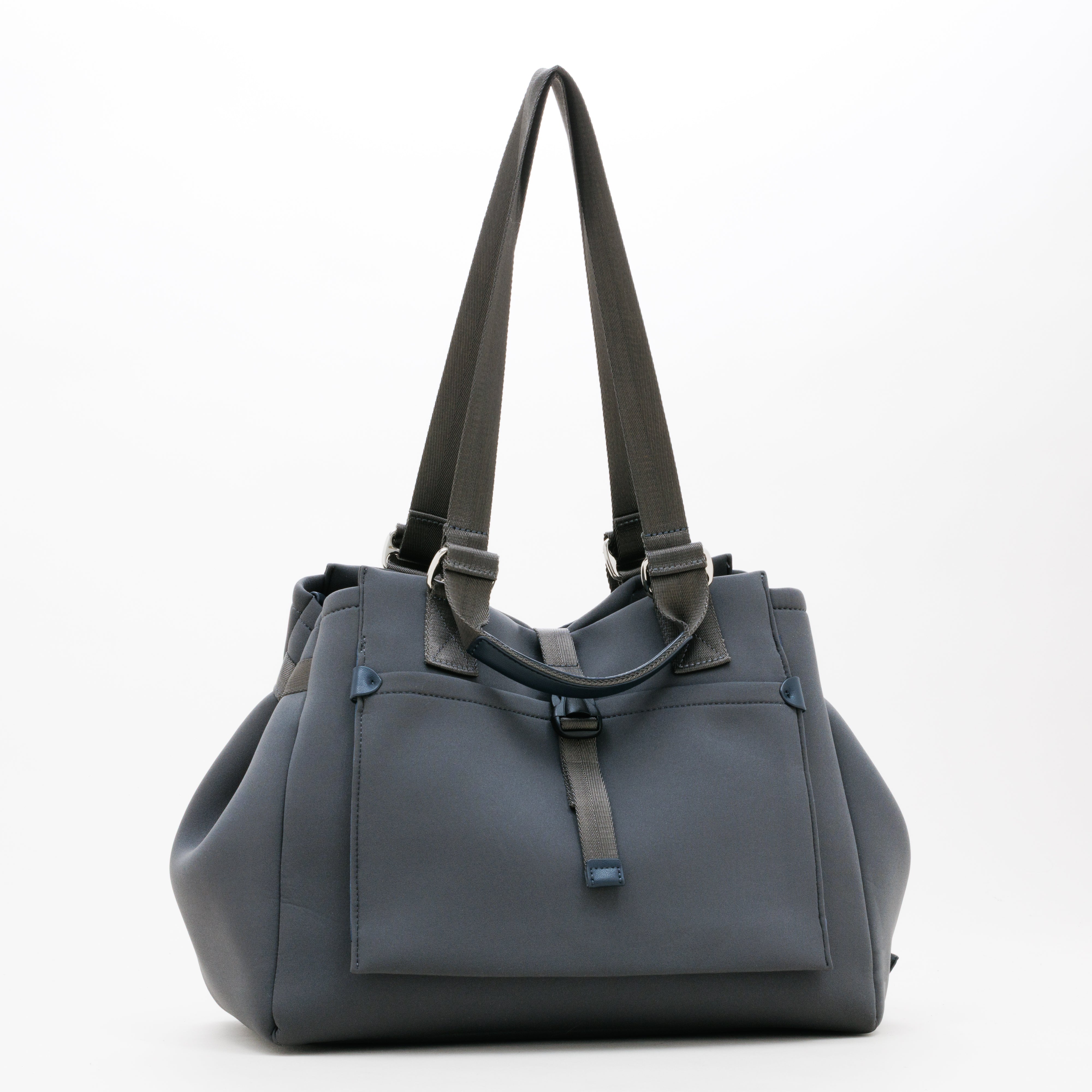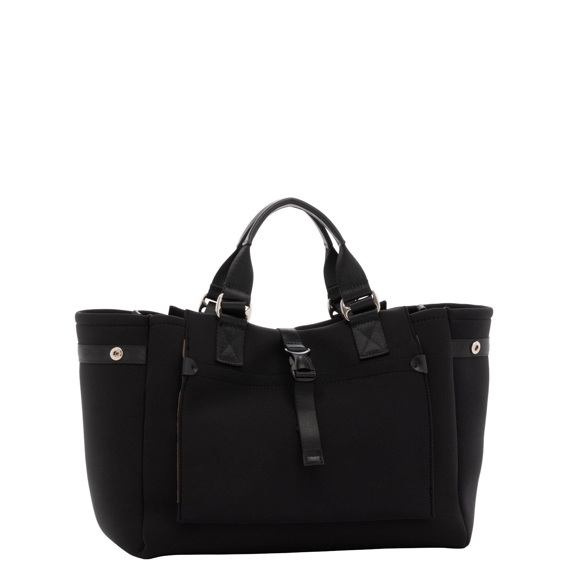 カジュアルなディテールながらも全体の色味を抑えることで都会的な雰囲気に仕上げたトートバッグ。